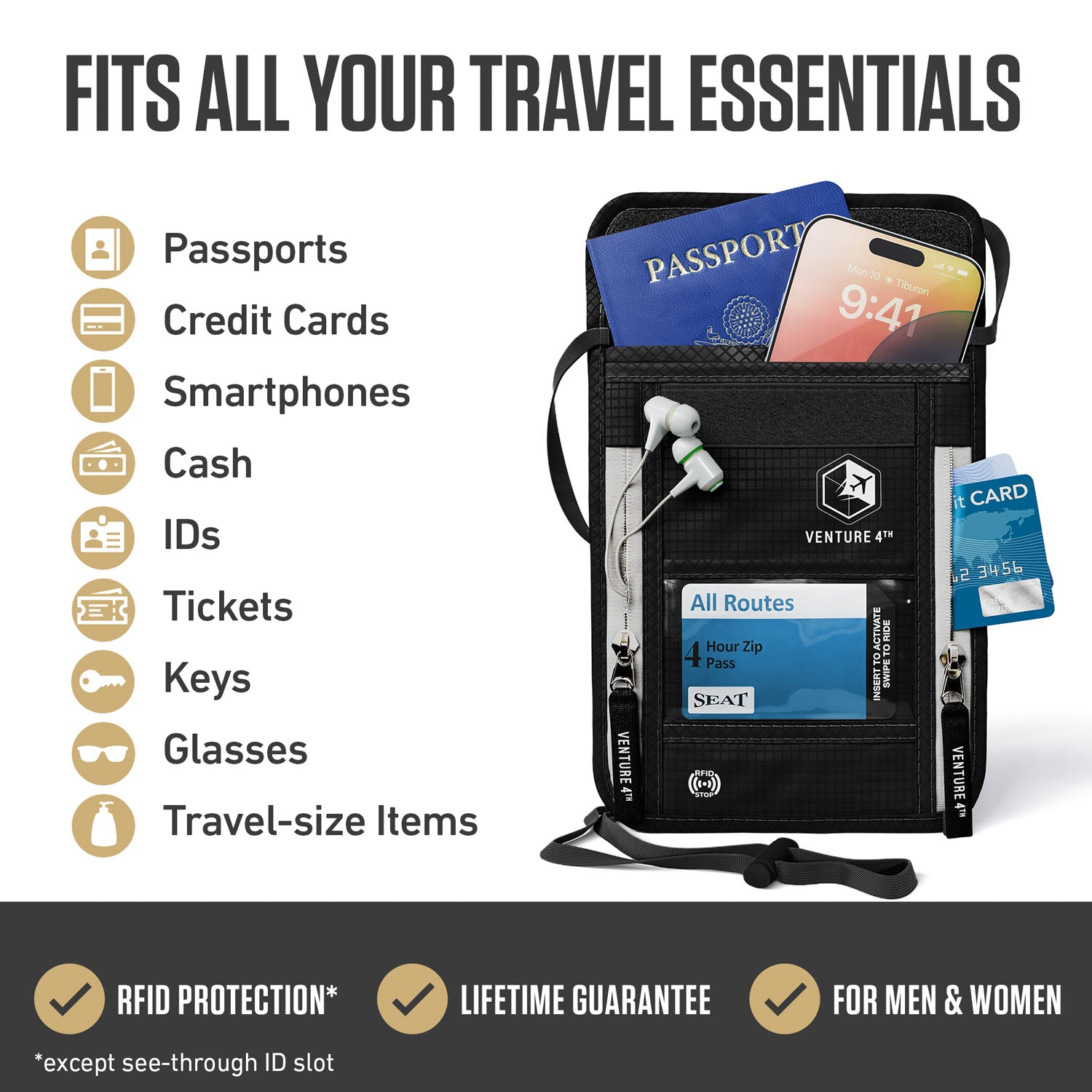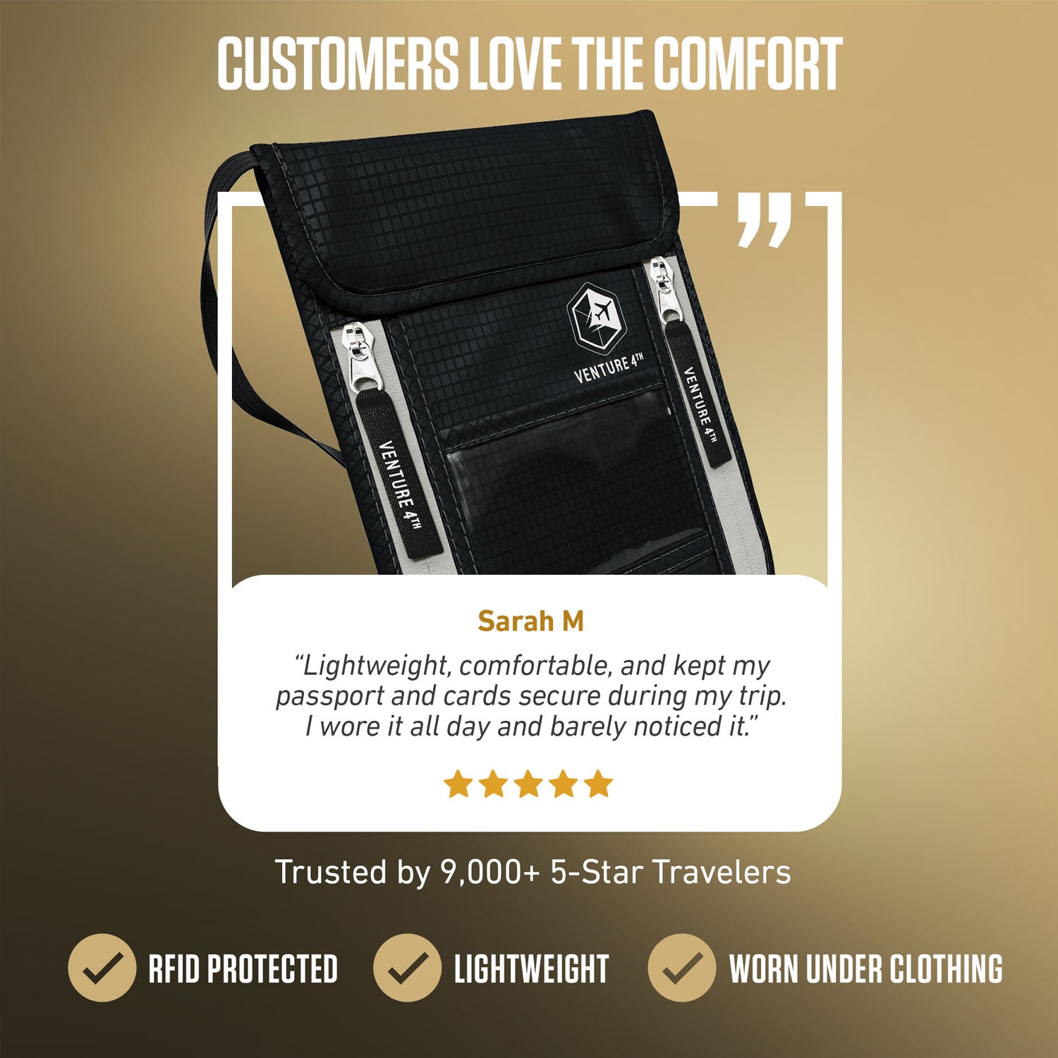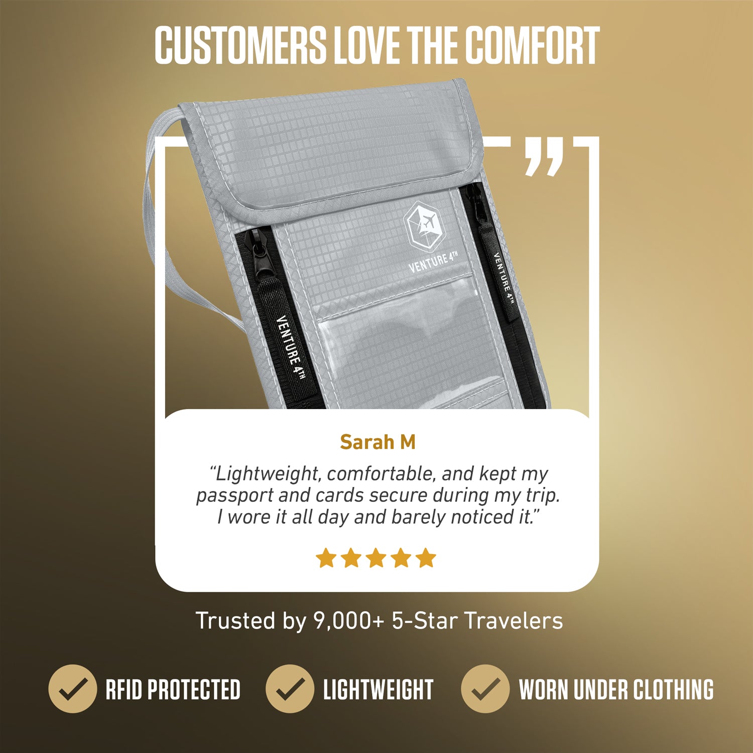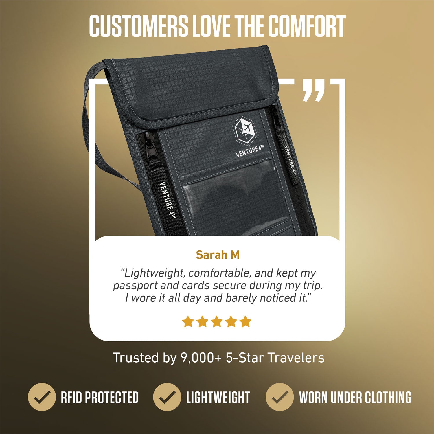 Why did you pick this product vs others?:Perfect travel wallet safe, slim, and super convenient! I bought the VENTURE 4TH Passport Holder Neck Wallet for my recent trip, and it was a total lifesaver! Here’s why I highly recommend it: ✅ RFID protection: It gave me total peace of mind knowing my passport and credit cards were safe from electronic theft. ✅ Slim and discreet: It’s very slim and fits comfortably under my clothes, so I felt secure carrying my valuables without attracting attention. ✅ Plenty of compartments: It has several zippered pockets that kept my passport, cash, boarding passes, and cards organized and easy to reach. ✅ Comfortable to wear: The strap is soft and adjustable, so I wore it all day without any discomfort, even in hot weather. ✅ Durable material: The nylon feels sturdy and high quality, perfect for frequent travelers.This neck wallet made me feel so much safer and organized during my travels. It’s a must-have for anyone who wants to keep their documents secure and avoid pickpockets. Highly recommended! I love it