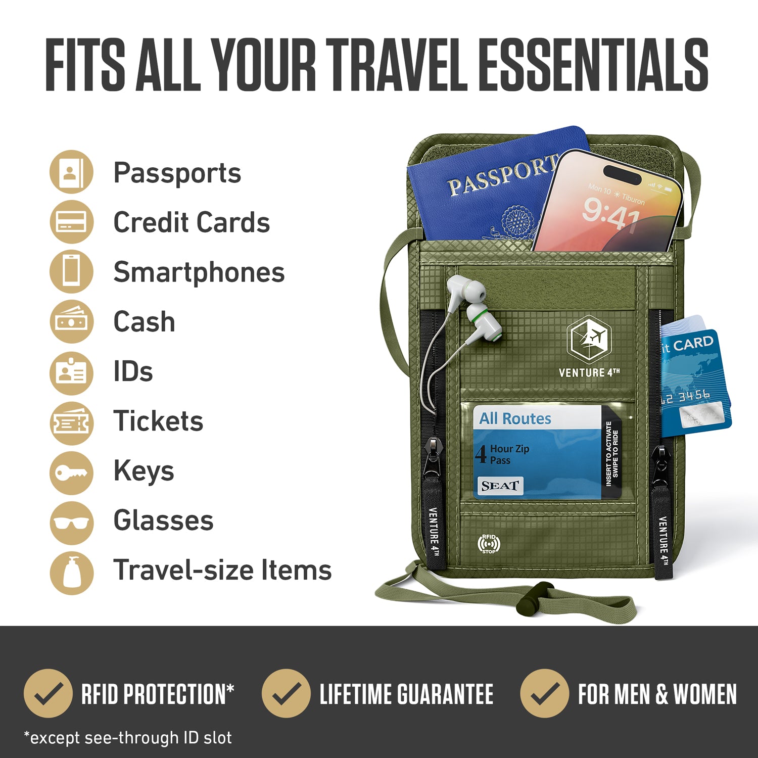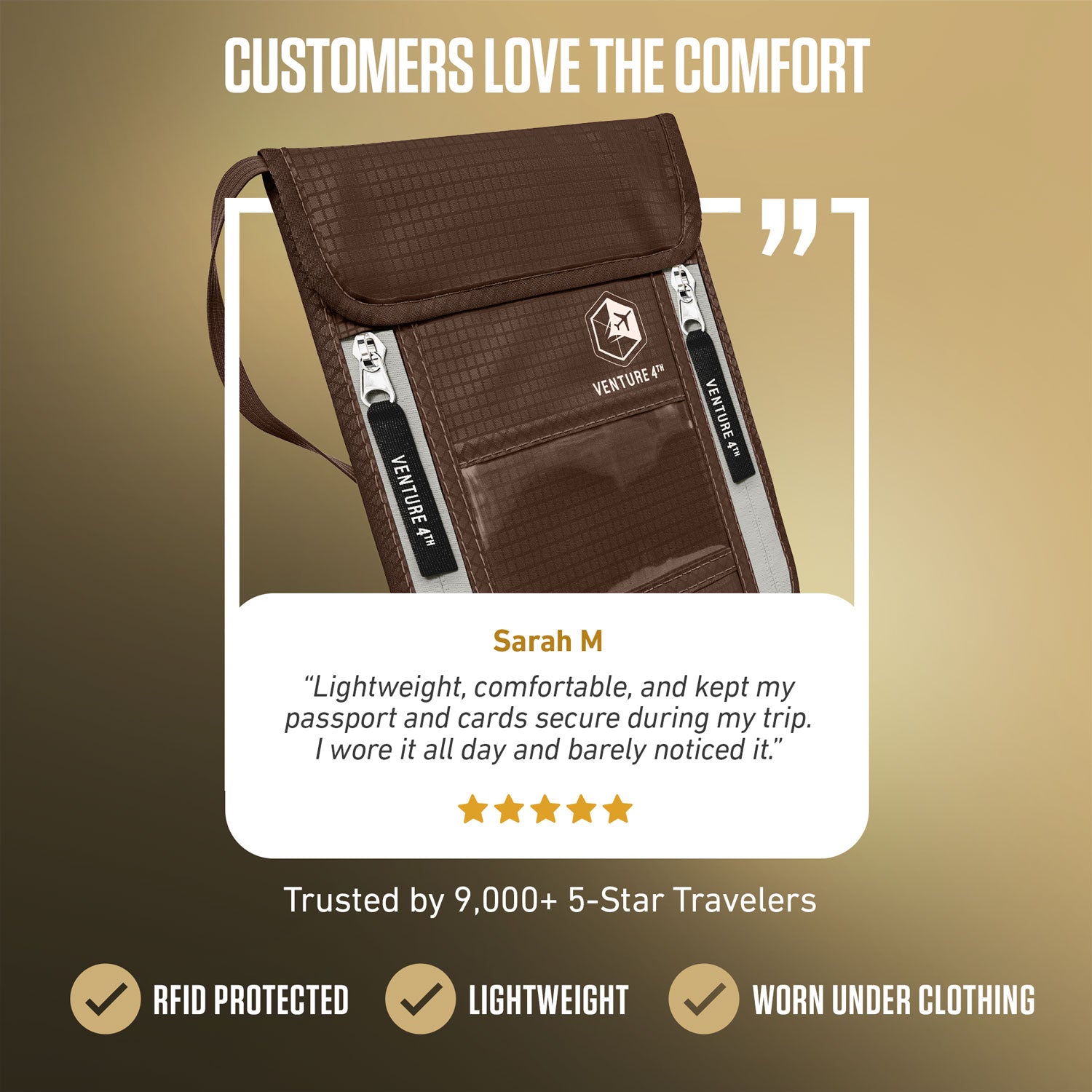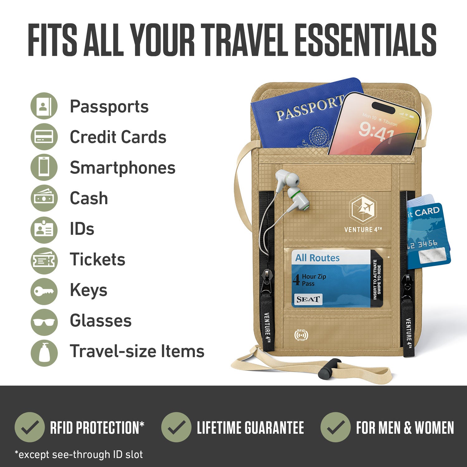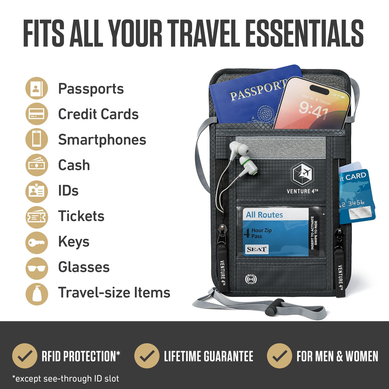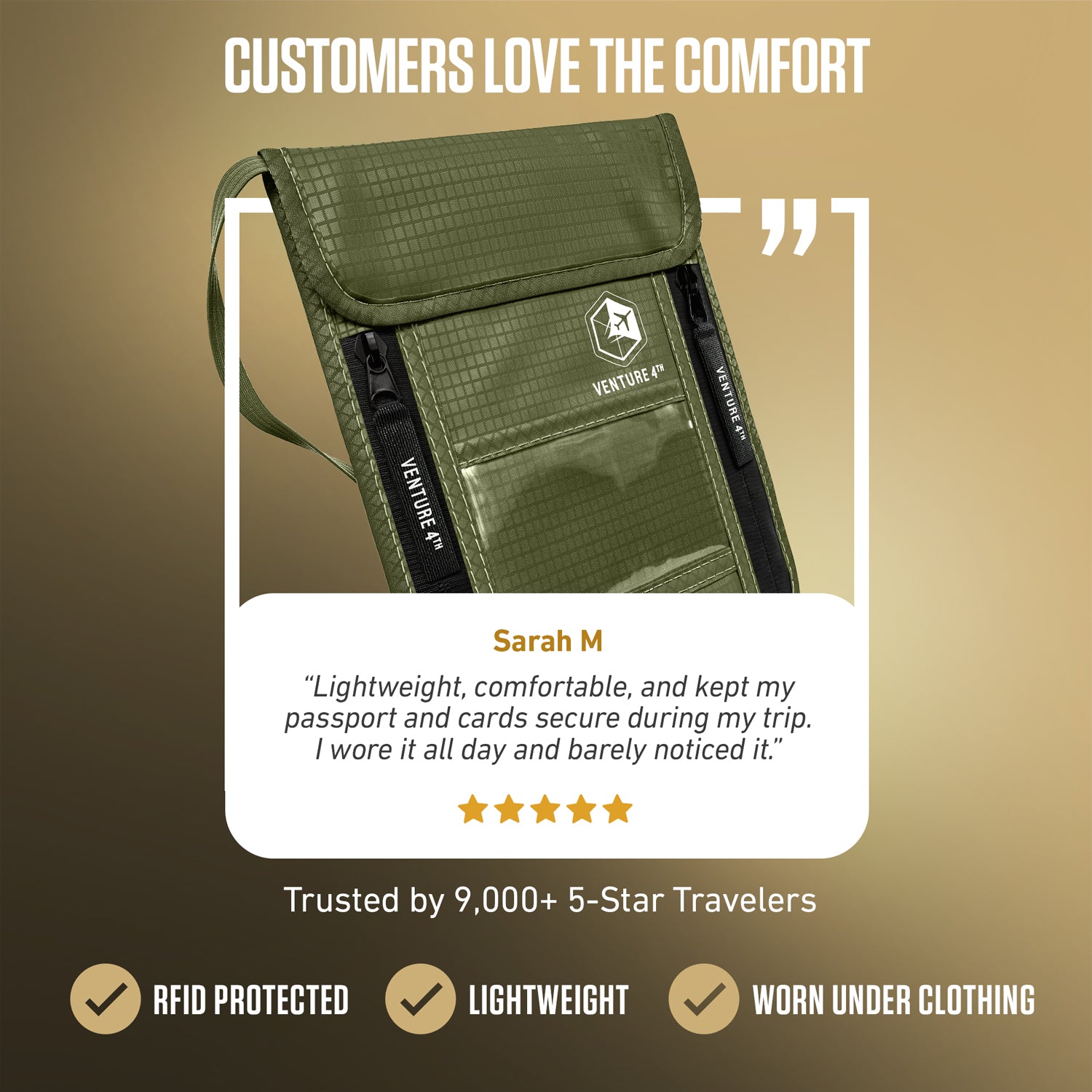 Why did you pick this product vs others?:Perfect travel wallet safe, slim, and super convenient! I bought the VENTURE 4TH Passport Holder Neck Wallet for my recent trip, and it was a total lifesaver! Here’s why I highly recommend it: ✅ RFID protection: It gave me total peace of mind knowing my passport and credit cards were safe from electronic theft. ✅ Slim and discreet: It’s very slim and fits comfortably under my clothes, so I felt secure carrying my valuables without attracting attention. ✅ Plenty of compartments: It has several zippered pockets that kept my passport, cash, boarding passes, and cards organized and easy to reach. ✅ Comfortable to wear: The strap is soft and adjustable, so I wore it all day without any discomfort, even in hot weather. ✅ Durable material: The nylon feels sturdy and high quality, perfect for frequent travelers.This neck wallet made me feel so much safer and organized during my travels. It’s a must-have for anyone who wants to keep their documents secure and avoid pickpockets. Highly recommended! I love it